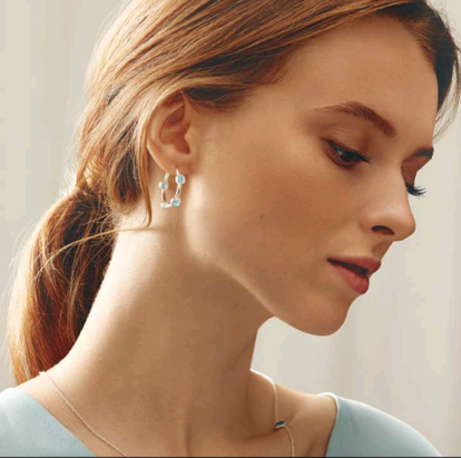 Beschreibung Inspiriert von Hagelschnee im frühen Frühling sind diese silbernen Creolen mit sechseckigen Steinen aus eisblauem Glas und ozeangrünem Amazonit – Stein der Wahrheit und Hoffnung – verziert.